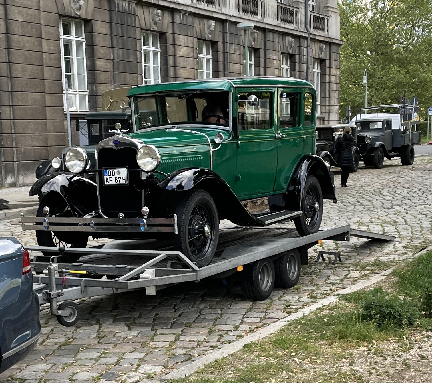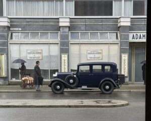Und wir sind dabei. Arne hatte bereits verschiedene Auftritte als Komparse, über die er dann bald berichten darf. Eines sei jetzt schon verraten: für einen Tag ging es nach Hamburg! Bereits im Herbst 2024 starteten die Dreharbeiten. Immer mal wieder sah man das Filmteam in der Stadt unterwegs. Berichtet wurde zum Beispiel über die spektakulären Dreharbeiten auf der Museumsinsel. Auch vor der Humboldt-Universität fuhren die alten Oldtimer vor. Was mag wohl das Gebäude in der Serie für eine Funktion haben? Oder geht Charlotte doch studieren, wie sie es in den Büchern von Volker Kutscher getan hat.